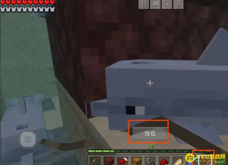 4.接着喂养海豚后,要是抓不住海豚鱼鳍,用拴绳对着海豚,点击中间拴住海豚。
