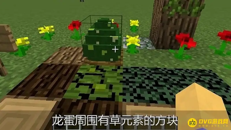 3、龙蛋周围有草元素的方块,然后放上去按右键等待孵化,就会孵化成森林龙。