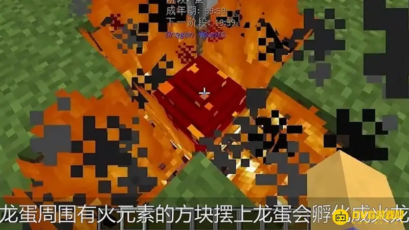5、龙蛋周围有火元素的方块摆上龙蛋会孵化成火龙。