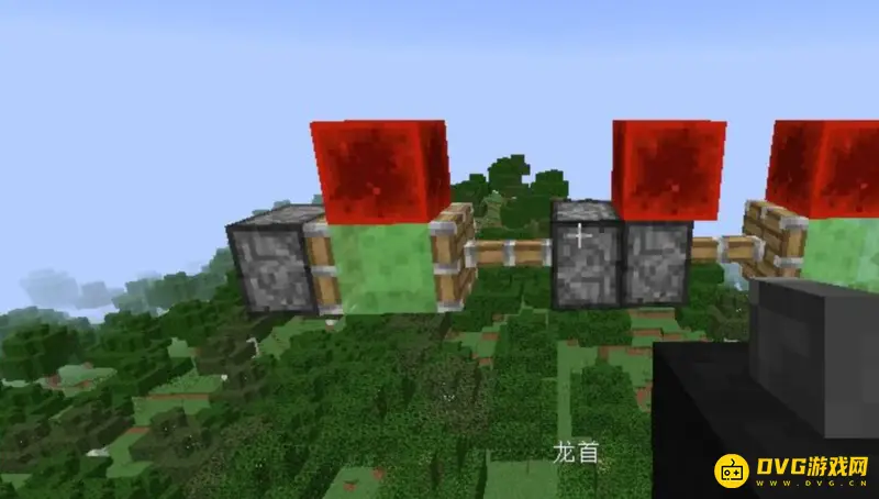 2.把机器做成如下图所示下面是活塞、粘液块、粘性活塞、活塞、粘液块,并摆好上面的红石。
