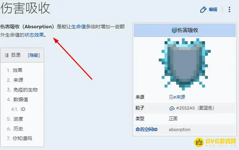 根据我的世界官方百科显示,伤害吸收(Absorption)是能让生命值条临时增加一些额外生命值的状态效果。