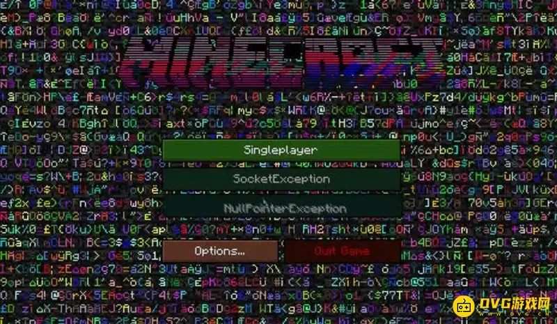 这个版本的Minecraft标题界面被破坏了,所以看到的Minecraft都是乱码,并且界面上的绝大多数按钮都是无法使用的。