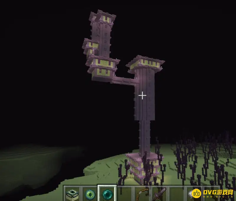 6、最后跟着末地植物找到末地船,找到并坐上末地船,就可以到达末地城。