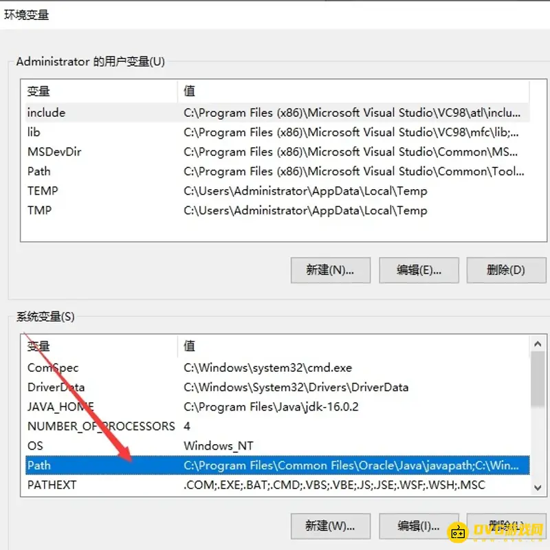 然后在系统变量列表中,双击Path变量,并将;%JAVA_HOME%in; %JAVA_HOME%jrein追加到变量值后面(注意,在变量的最末尾添加时,要记得加上分号)