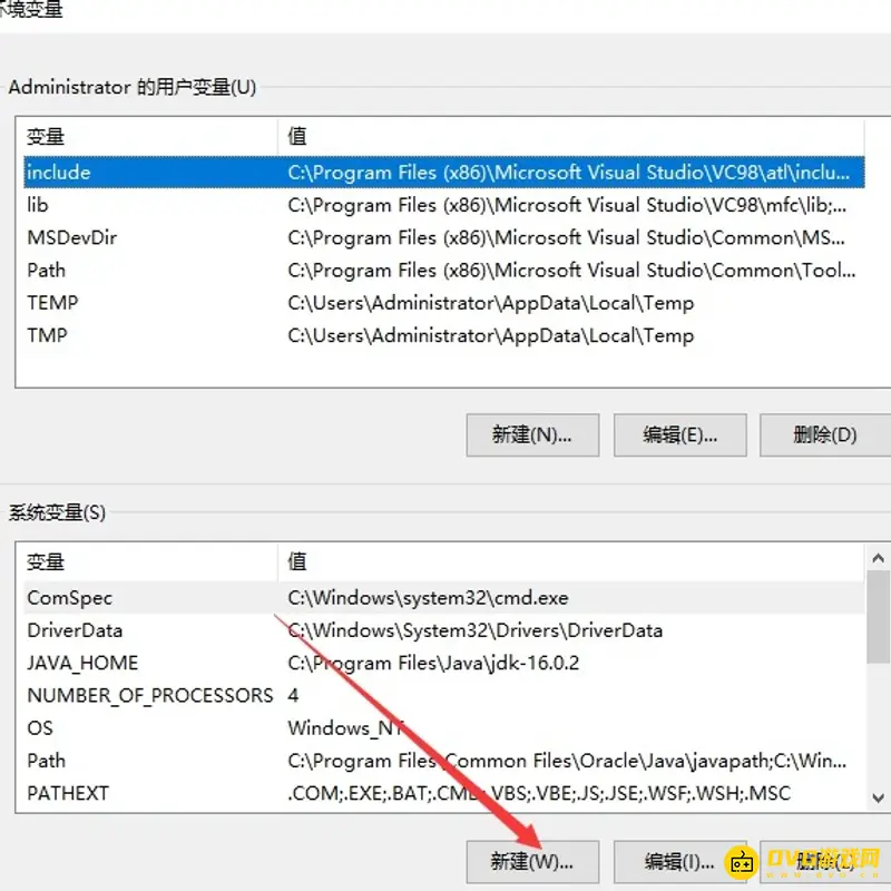 新建一个系统环境变量,变量名为JAVA_HOME,变量值为JDK的安装路径,如下图所示: