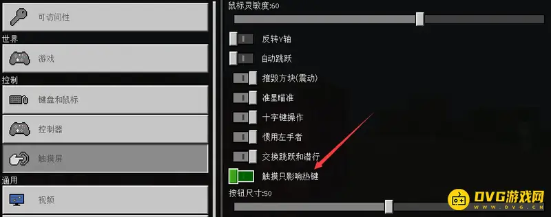 4、将“触摸只影响热键”前面的开关关闭即可,如下图所示。