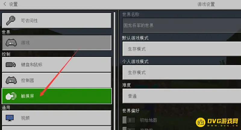 3、进入设置界面后,点击“触摸屏”选项按钮,如下图所示。