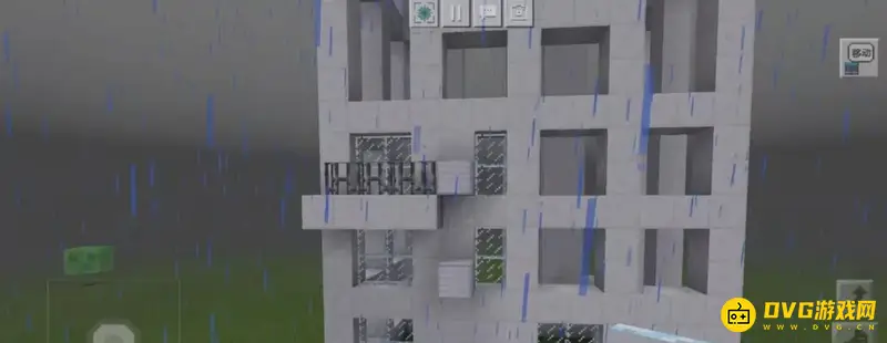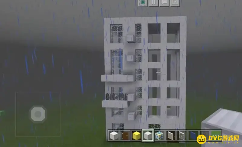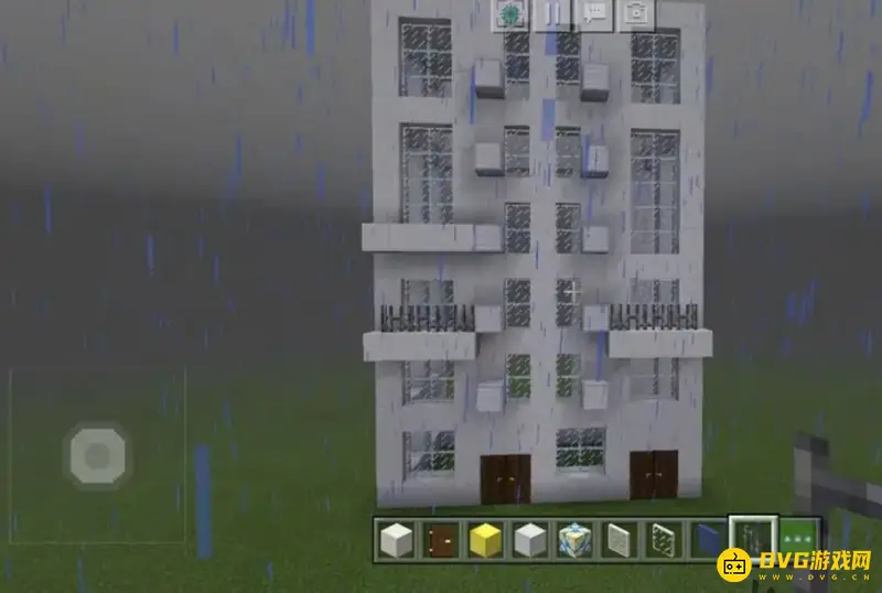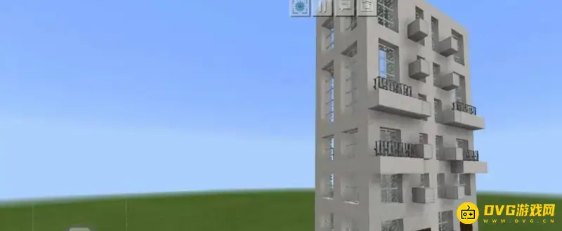 10.然后选择铁块,外观酷似空调,每隔2格安置一个,这样左侧的楼型就完成了。