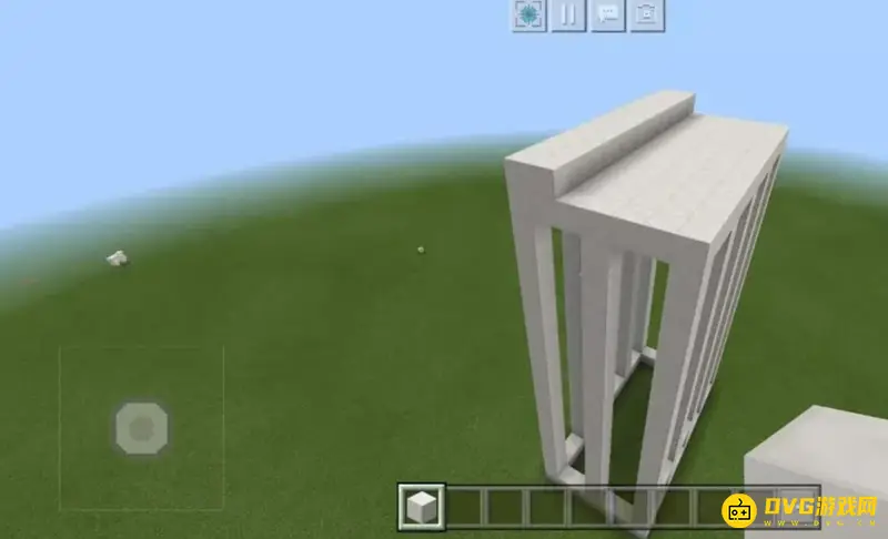 1.首先我们选取石块打好地基,这里使用白色的石英块,外观洁白比较好看,使用15*7的长宽,大家可以自由选择。