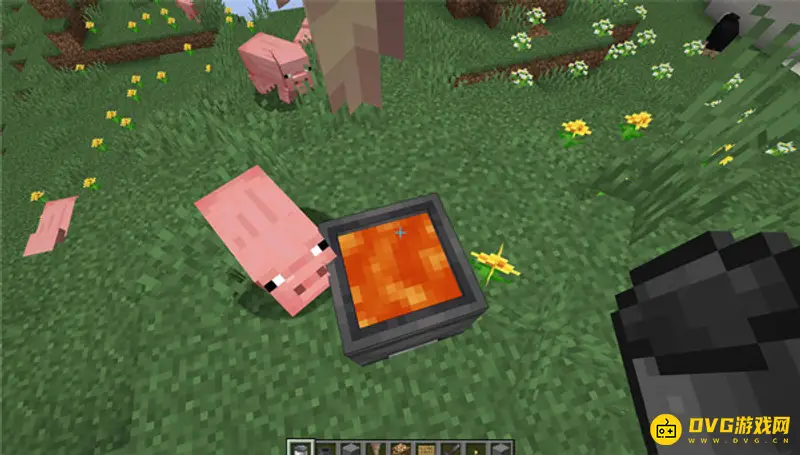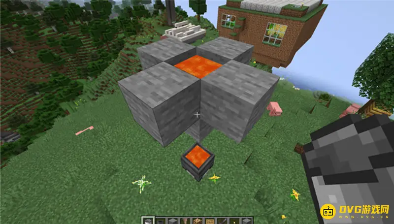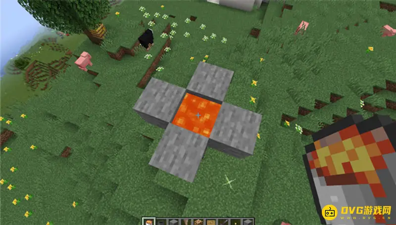 8、我们可以发现上方的岩浆没有流失,这样就可以达到无限岩浆的效果了。