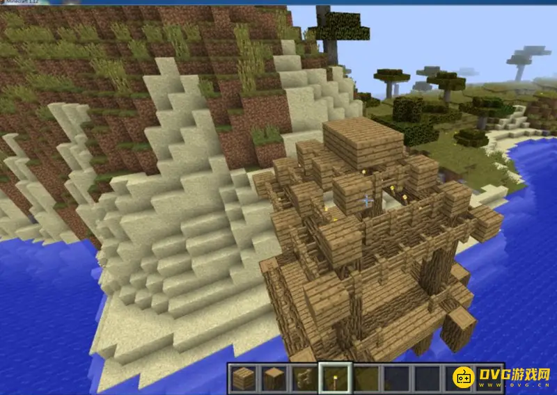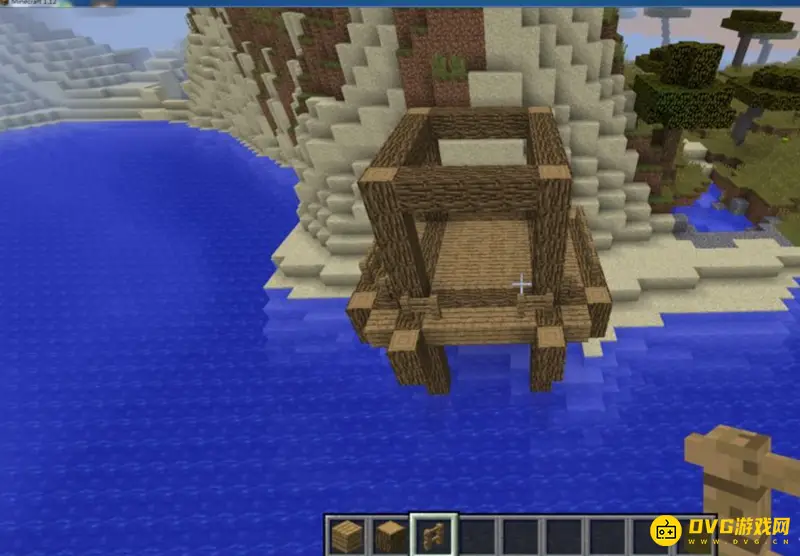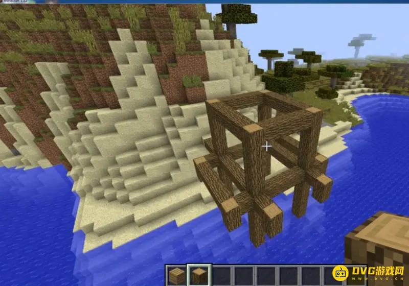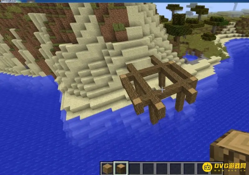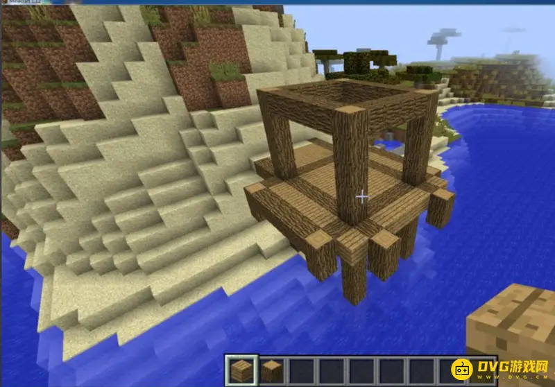 2.第一步,用橡木搭出一个凉亭的基座,这个基座就决定了凉亭的大小。