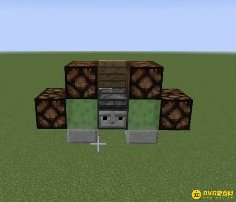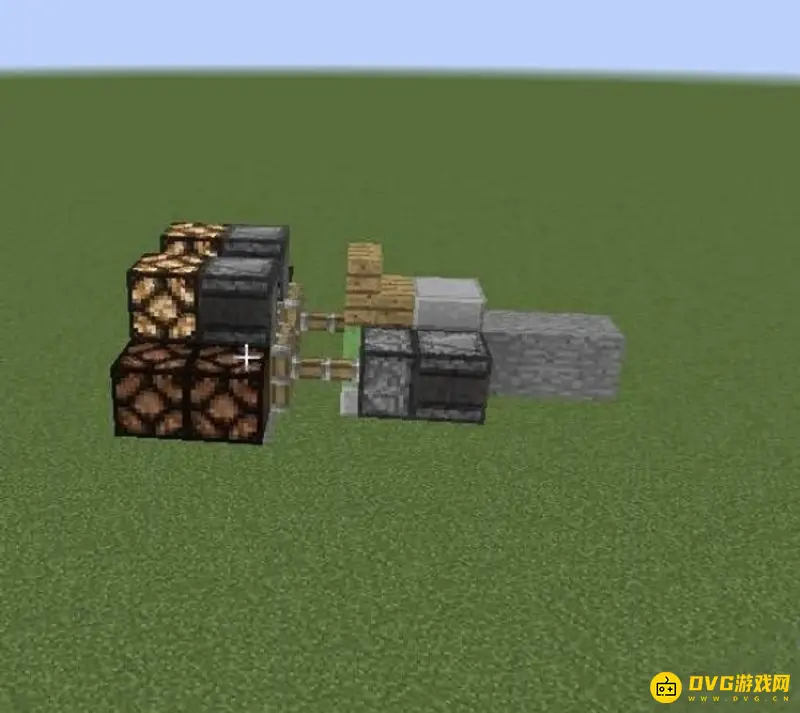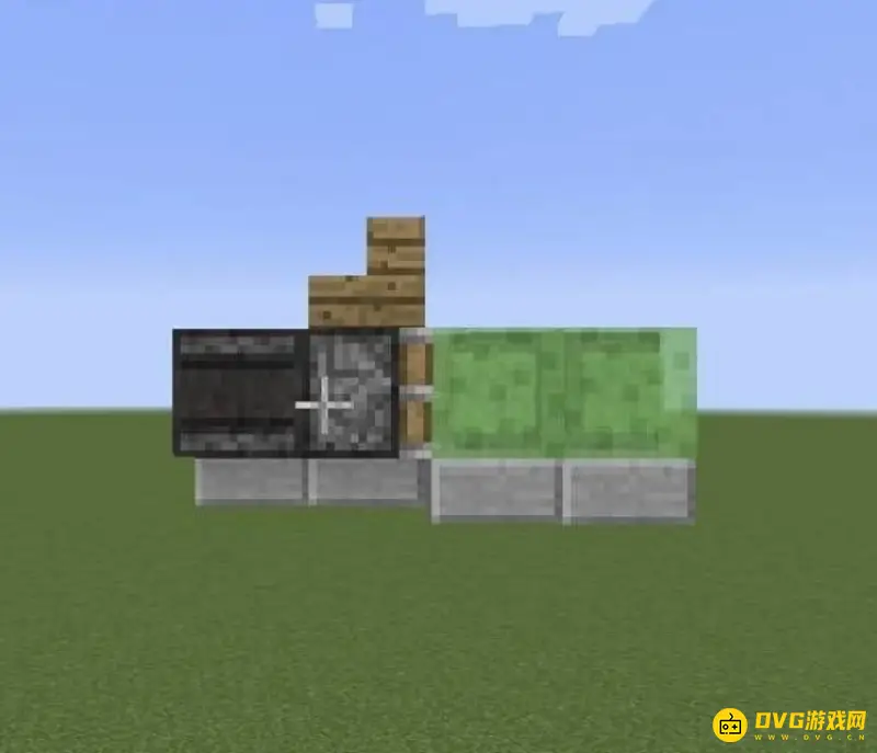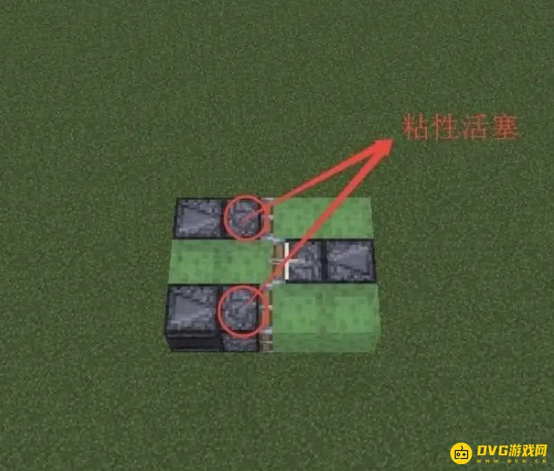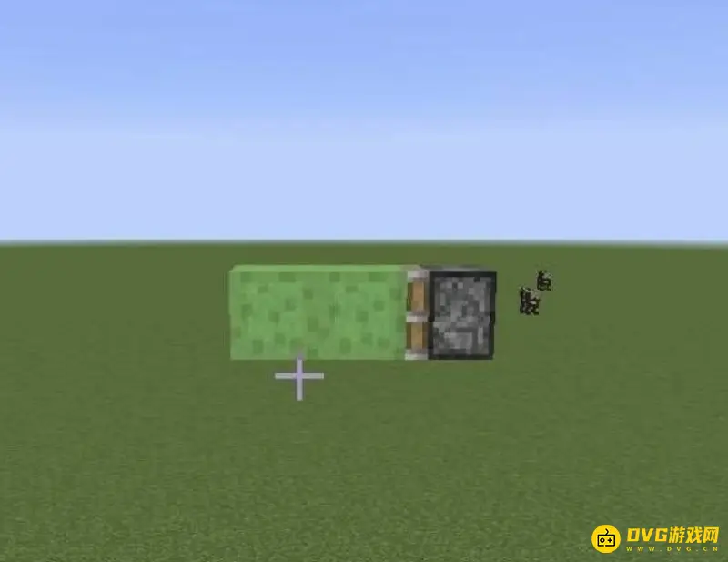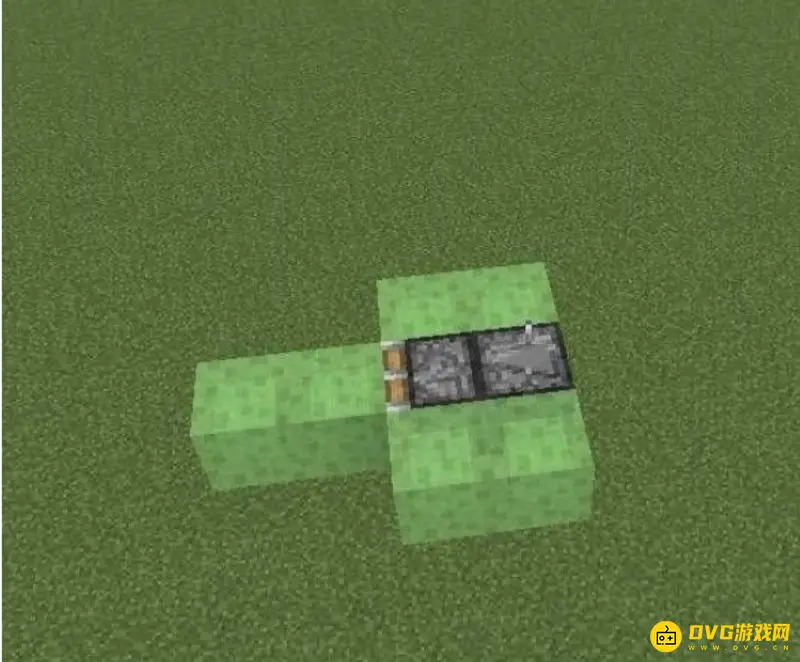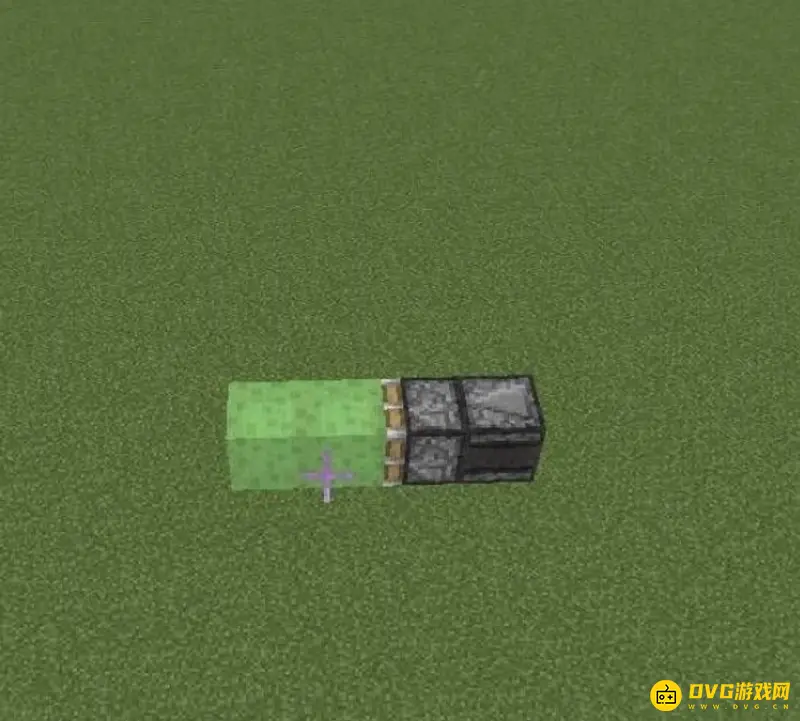 1.首先玩家放1个活塞,在前面再放2个粘液块,如下图所示。