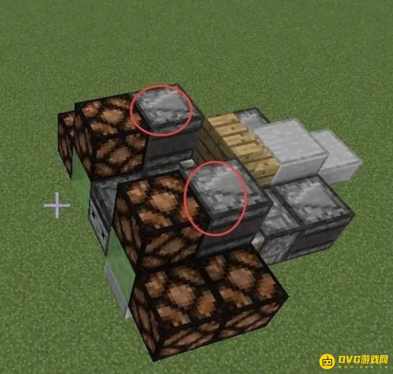8.飞机头部那里放2个石头,粘液块上方半砖。