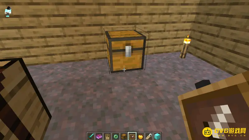 1,首先我们需要找到一个箱子,然后按SHIFT蹲下,拿着物品展示框对着箱子点击鼠标右键。