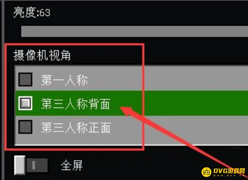 3.最后点击摄像机视角选项中的第三人称背面选项即可开启上帝视角。