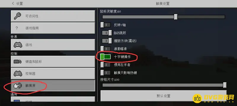 2,然后点击左侧的触摸屏,在右侧打开或者关闭十字架操作。