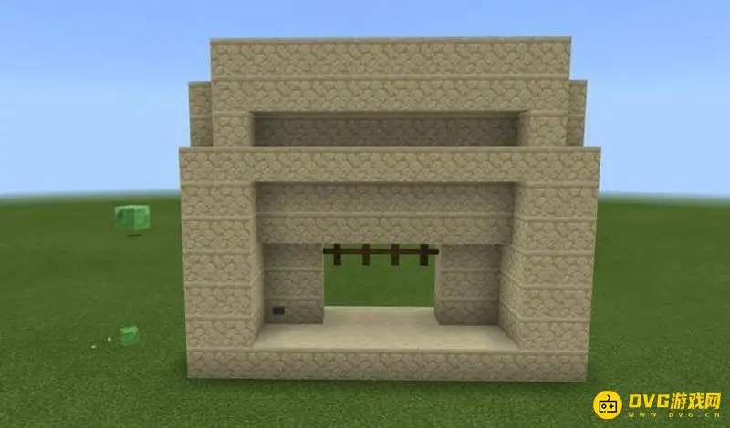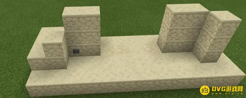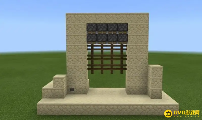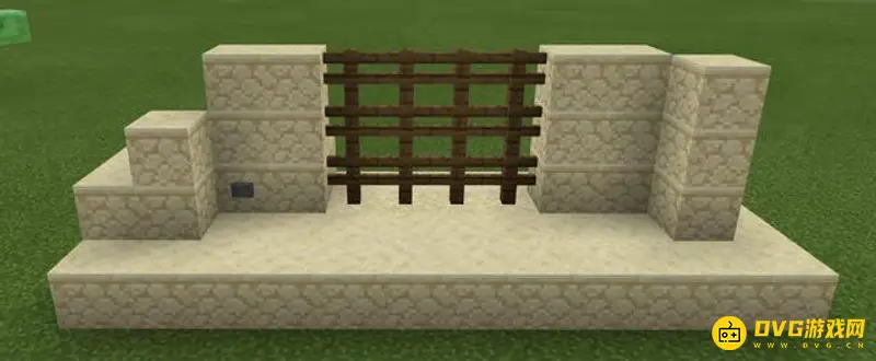 4、接下来,在活塞上面摆两层沙子,周围再稍微装饰一下,把红石线路隐去,这就是我们的大门基座了:
