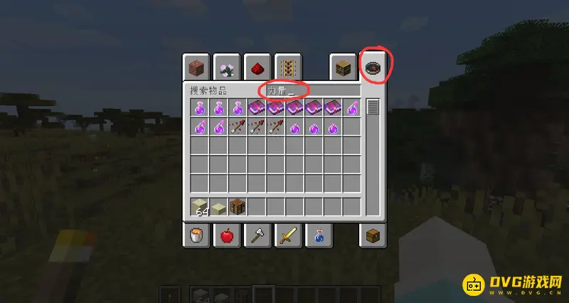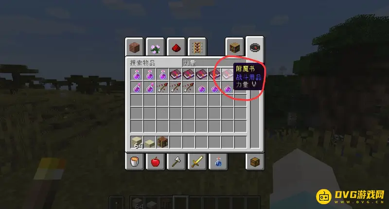 1,首先我们进入我的世界游戏中,打开创造模式,打开背包点击右上角搜索按钮,搜索力量。