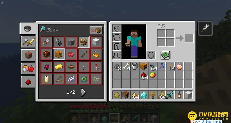 【我的世界】的人物面板(背包)只需要点击【E】键即可打开,玩家可以在该界面进行更改自己的装备、合成简易物品、查看当前药水效果等等操作。