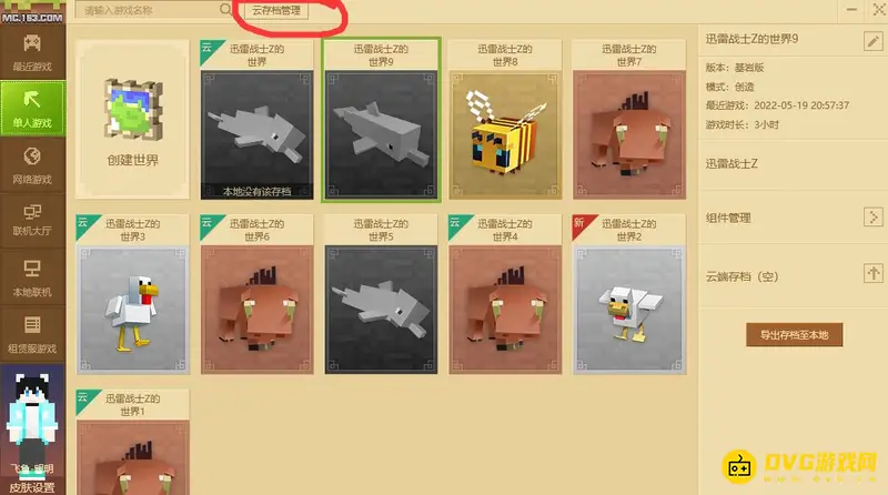 1,首先我们进入创建游戏界面,点击上方的云存档管理。