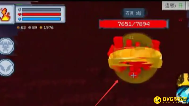 3、进入地图,在新地图中对着这个圆形的火球撸几下收集火种。