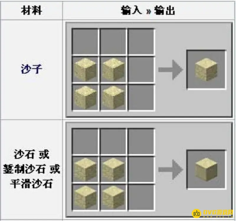 沙石可在沙子堆积的底部合成,是一种固体方块。沙石可以一般在沙子堆积的底部找到,也可以用4块沙子放做方形来制造出来,因此合成时工作台不是必需的。一个砂石需要四个沙子合成,放置的砂石可以用镐来取得,空手敲的砂石方块不会产生沙石资源。空手采集时,沙石比木头花费稍长的时间。