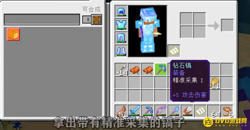 玩家使用附有精准采集魔咒的工具可以带走海龟蛋,如下图所示,我使用的是钻石镐。注意如果被没有附有精准采集的工具破坏,或是被活塞推动,或是受重力影响的方块落入其空间时,蛋会破碎且不会掉落任何物品。