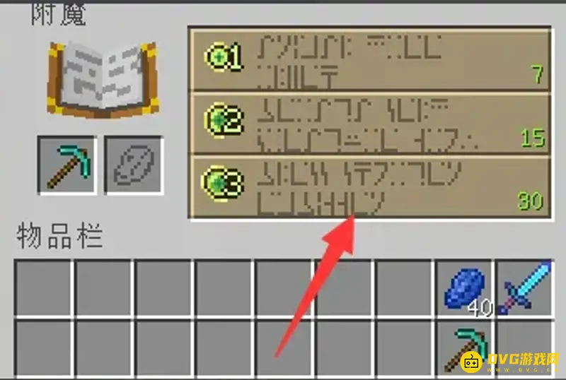 将装备放入附魔台,点击最下面的一层即可附魔最高等级。