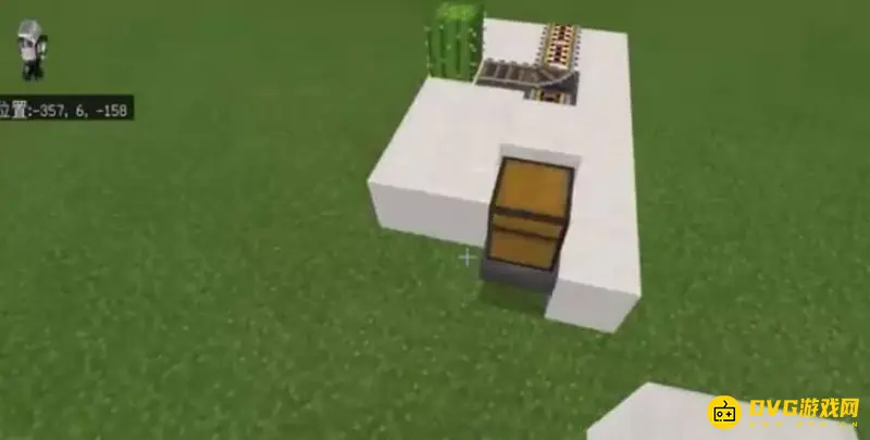 4.在那两个漏斗上,前面一个放上白色方块,后面一个放上宝箱。