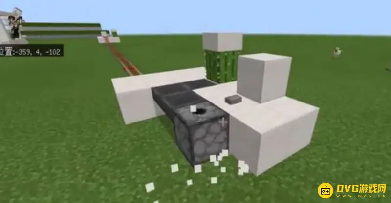 3.把发射器边上的方块敲掉换成漏斗安上去。