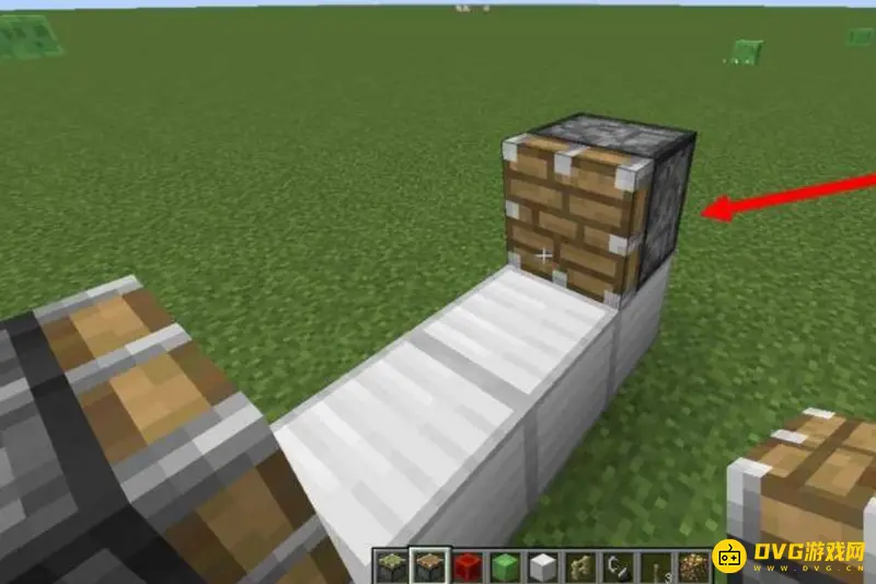 3.在方块的另一头放上一个活塞,普通的活塞,方向要正对着粘性活塞。
