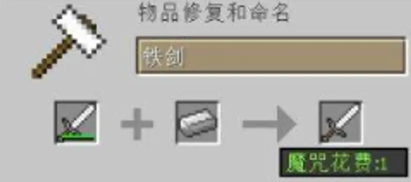 铁砧可以用来修复工具的;铁砧可以进行附魔武器,将工具放在左边,附魔书放在中间;铁砧可以用来进行更名,将需要修改名称的物品移动到铁砧上拿出即可,如下图所示。