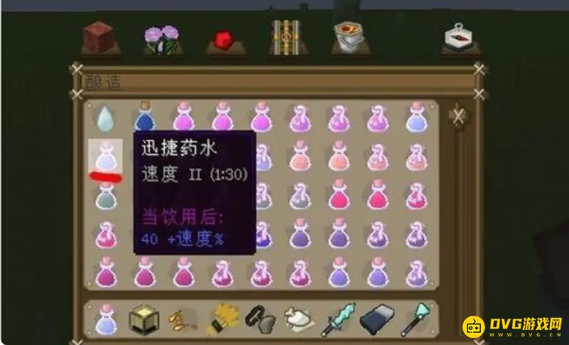 2、也可以通过喝下迅速药水,按右键饮用,即可加速,但时间有限。