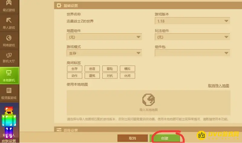 1.首先打开我的世界游戏当中,然后点击界面中的左边的本地联机,再点击右上角的新建房间就可以了,如图所示。