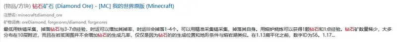 1,首先我们搜索并进入我的世界钻石的相关说明。