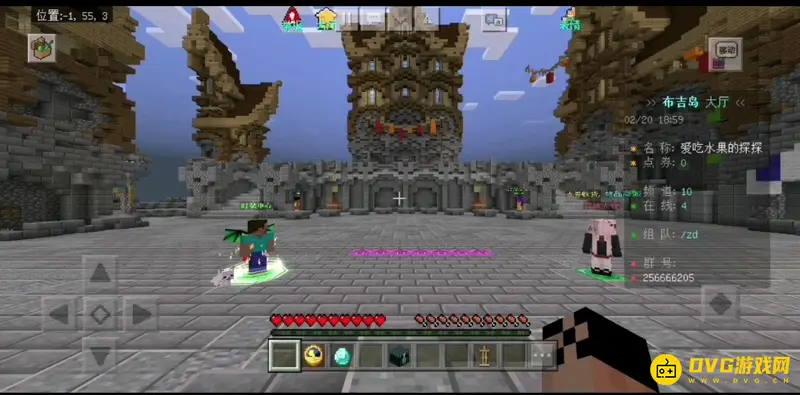 3.带好装备出发,先用方块搭路去另外一个岛(铁点,有些地图的铁点在主岛),铁点是生产铁锭的地方,比铜更加值钱,可以购买更好的物品。从铁点继续搭路就到金点,金锭比铁锭值钱,可以购买更强的武器。
