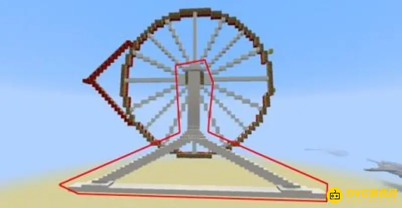 地基搭建好了之后,就可以搭建支架,控制好距离,然后记住方块的数量,每一个支架都用同样个数的方块就可以保证是一个圆形。