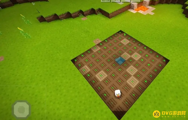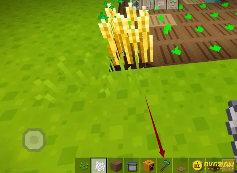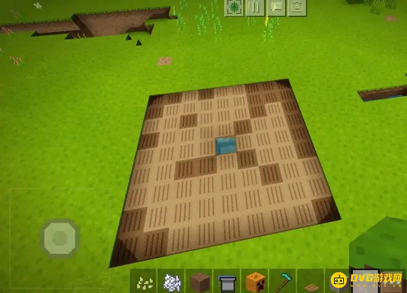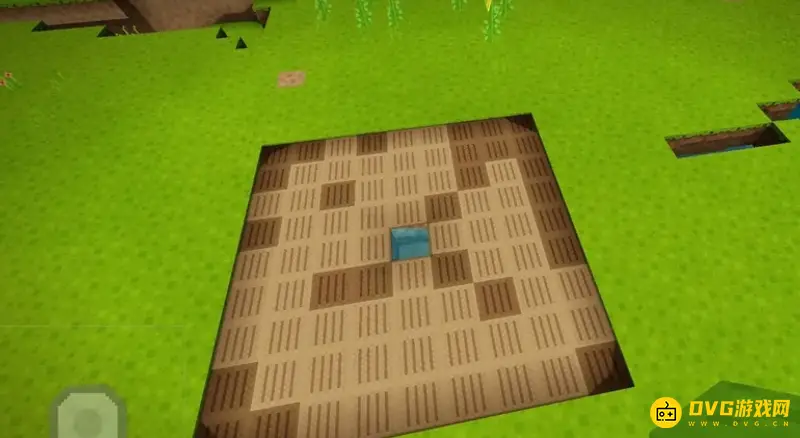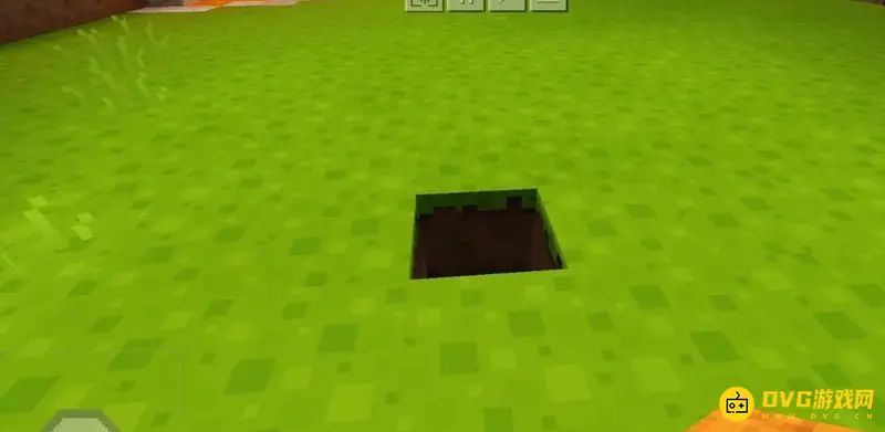 2、获得小麦种子之后,我们就需要在平坦的草地上挖一个小小的坑。