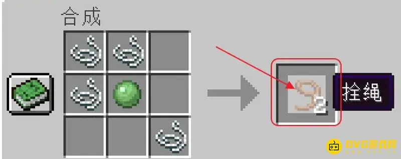 把4个线和1个粘液球放在工作台上进行制作就能获得拴绳。