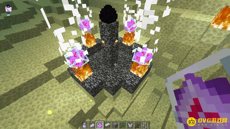 1,首先我们需要拿着末影水晶,找到末影龙的传送门,然后在四周都放上末影水晶,按照如图所示即可。