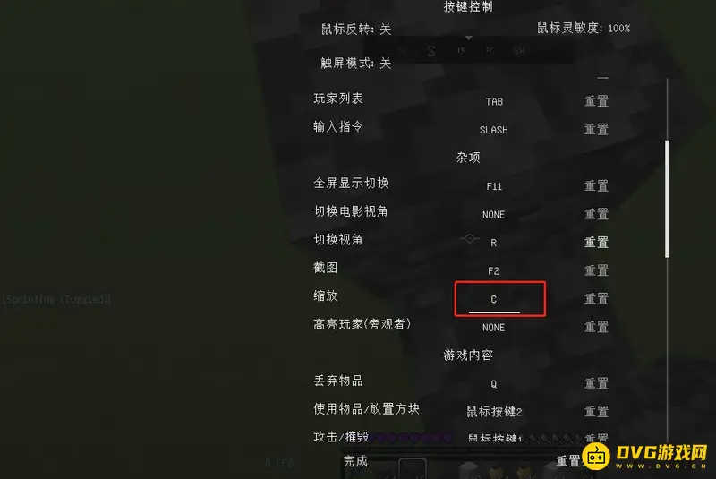 4.点击缩放旁边的键位,在键盘上按下你的新键位即可。