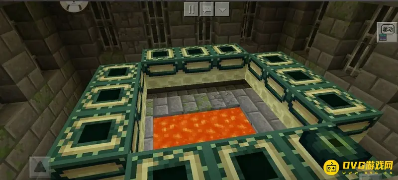 8、然后在要塞里找一下,就有个现成的末地传送门,我们把没填的末影之眼填上,一个能传送的末地传送门就完成了。