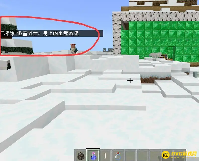 1、首先我们进入游戏,打开聊天框,输入这条指令。指令是/effect <玩家名>clear。