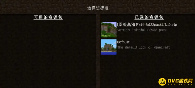 5、拖进去后在可用资源包里会多出来一个选项,想他移到已选资源包上,就可以替换资源包了。
