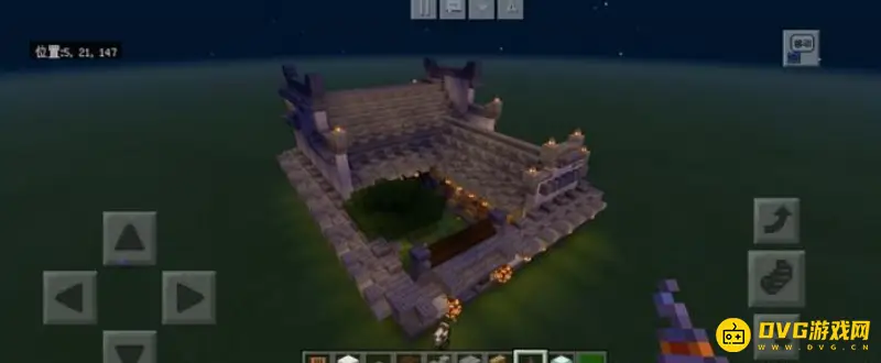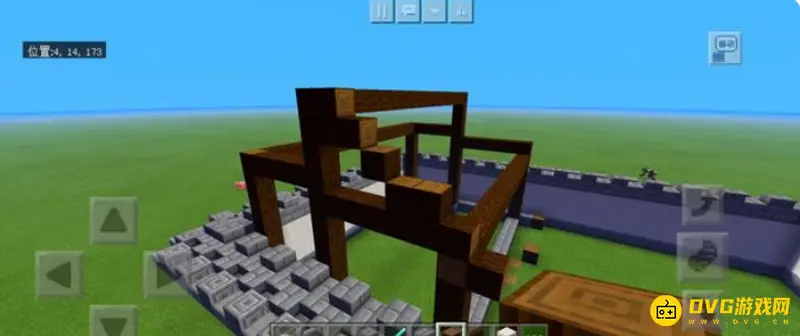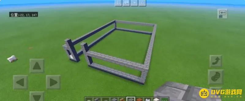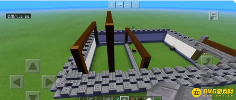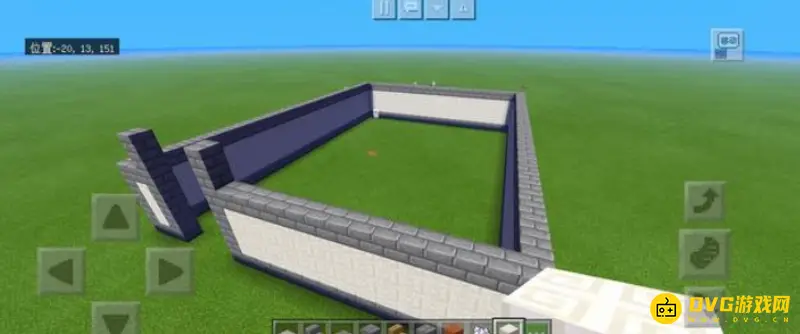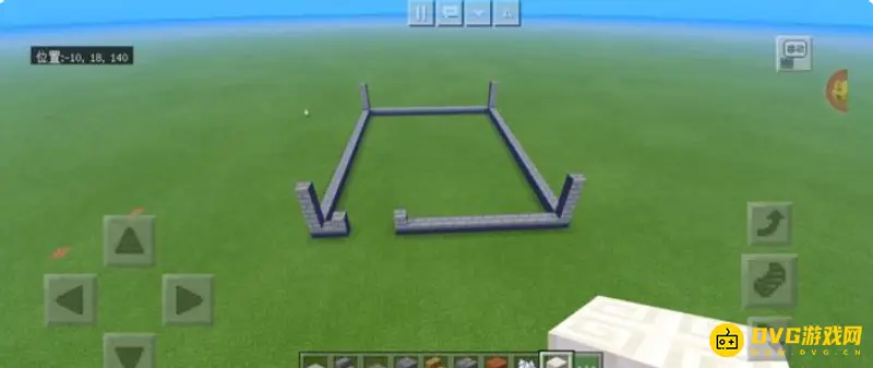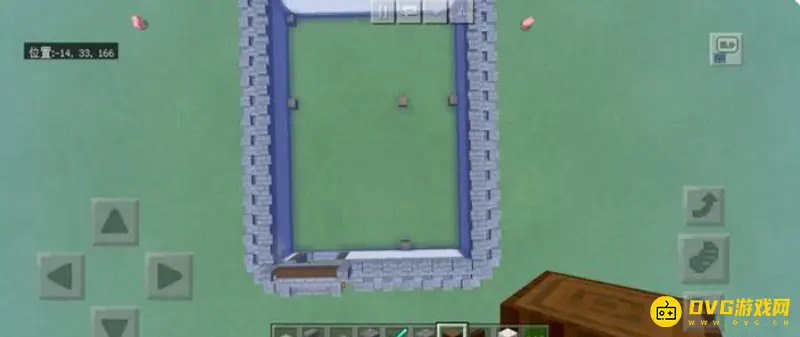 11、接着做屋子的主体结构。在围墙的1/3处,也就是十格左右搭建屋子的厅堂
