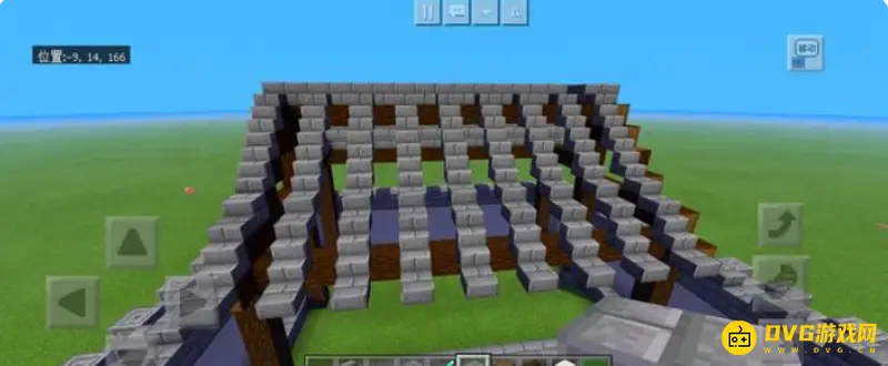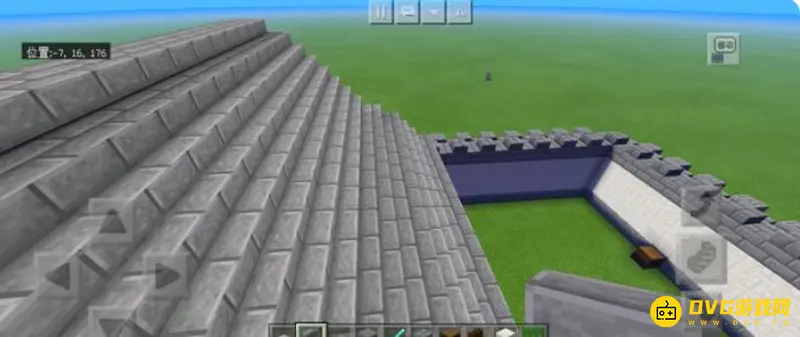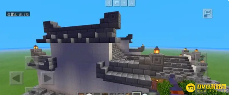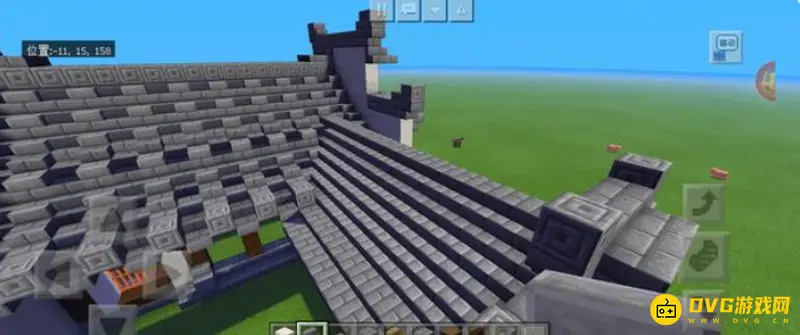8、然后是围墙的屋檐。围墙的屋檐第一层采用的是砖石阶梯,按照一正一反的方式放置