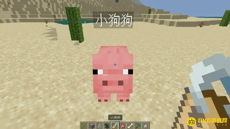 3,最后我们需要找到一只猪,拿着命名牌右键点击猪,就可以成功给猪命名了。