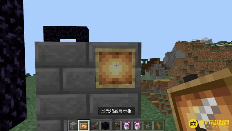 1,首先我们需要拿着发光物品展示框,然后右键放在墙上。