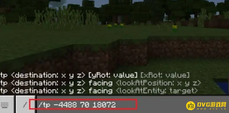 3.接着继续向刚才那样输入指令,这次的指令是输入/tp加刚才的林地府邸的坐标。
