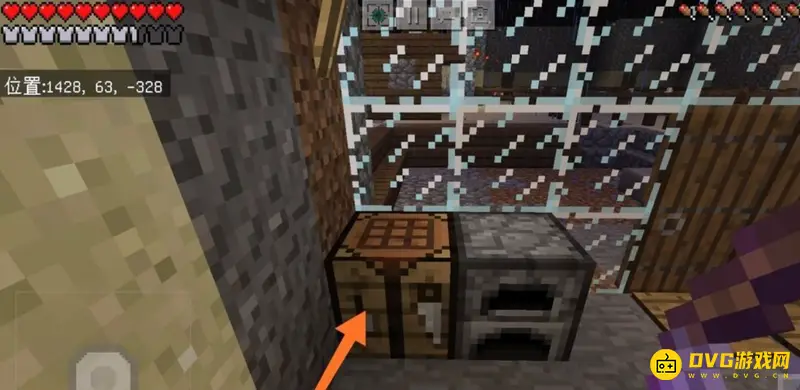 1、首先,我们必须制造工作台。因为仅靠手无法合成火药的。所以我们首先砍伐橡木获得橡木块。如下图所示。